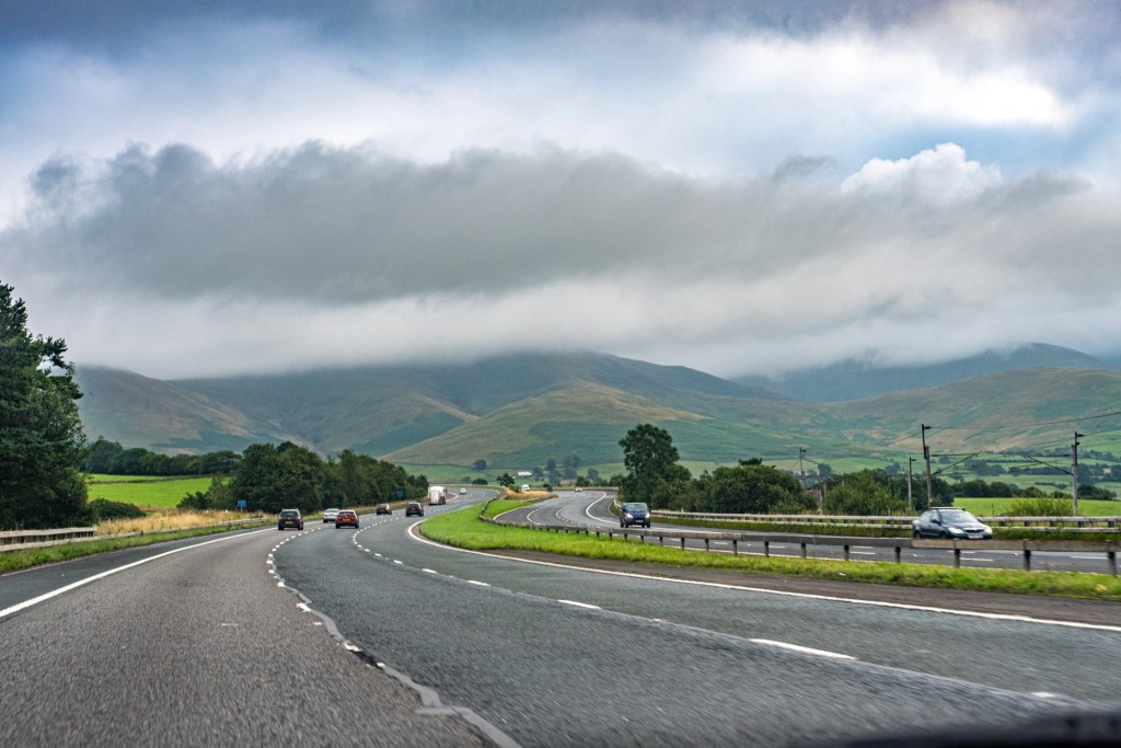 The first leg of the journey was from our home in the midlands to John o’ Groats; but we had carefully planned it with a halfway point stop over at my conveniently located parents house. This is my favourite part of the M6 as we head North, it’s always beautiful come rain or shine!