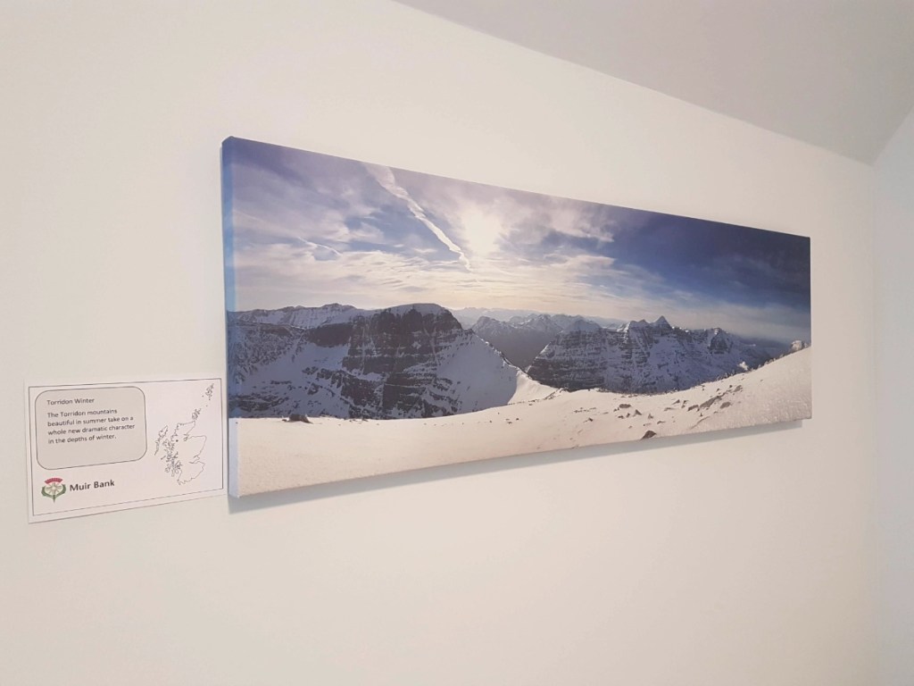 That night we stayed at Muir Bank, a lovely, newly refurbished building with several self contained en-suite rooms, in the village of Muir of Ord. We have recently seen it up for sale, so I’m not sure if it still is used for this purpose, but at the time we stayed we were very impressed with the quality of the rooms for the price – everything was still new and clean, and we loved the local photograph canvases in the rooms and throughout the communal areas.