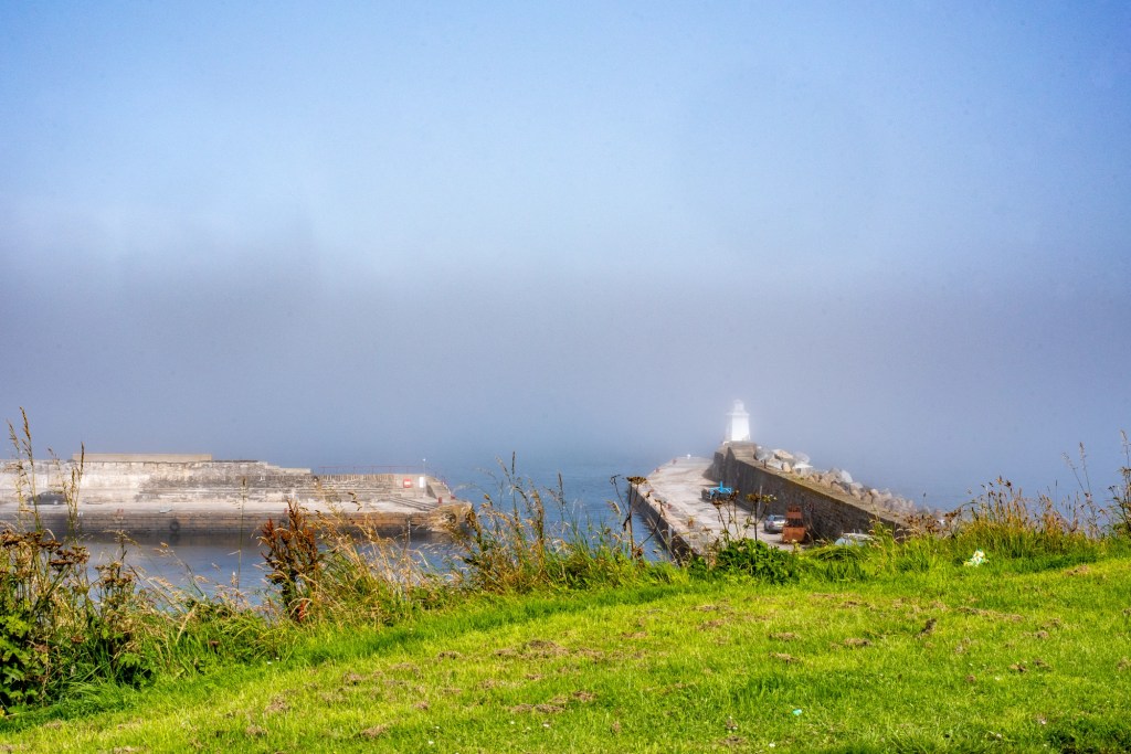 The mist was thick when we arrived, but as we sat there it slowly rose to reveal a lighthouse and the coastline. We finished the snacks and wandered further up the coastal road, before heading back to the car, where we found a small soft play area just by the distillery. I let the children free to burn off some more energy before we hopped back into the car for another few hours driving.