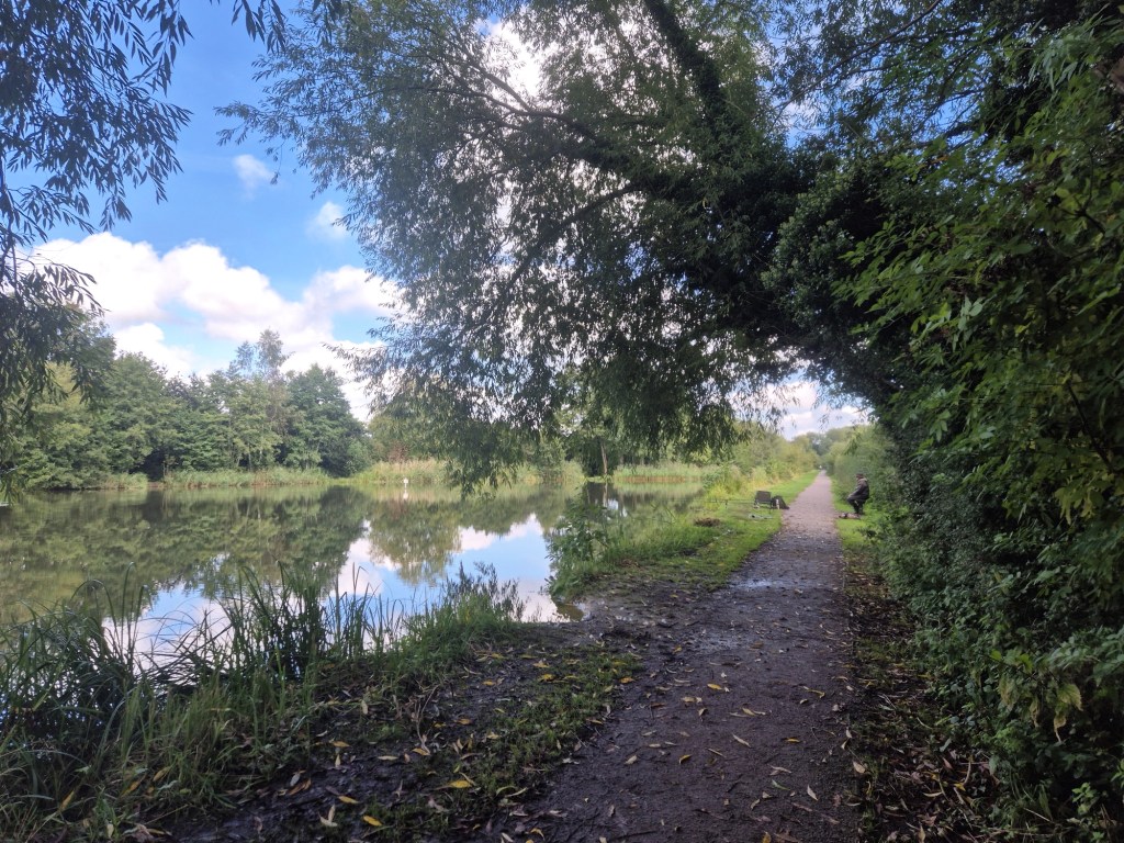 I didn’t realise until I came back, but the bridge allowed you to cross over to the other side of the canal. This created a loop around the next filled in lock, with a grassy footpath and little cut away sections for people to fish from. Not long after the bridge, I witnessed more fishing…