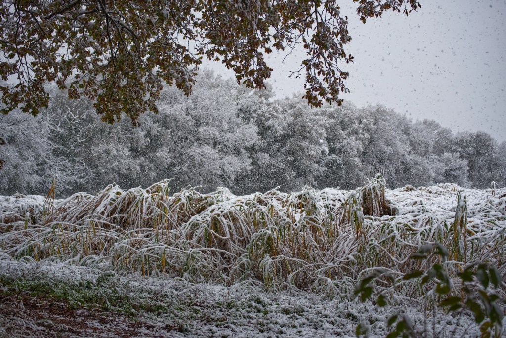 I walk this beautiful lane almost every day. It’s pretty, but even prettier with this snow. I loved the mix of autumn golds and greens with the wintry white snow!