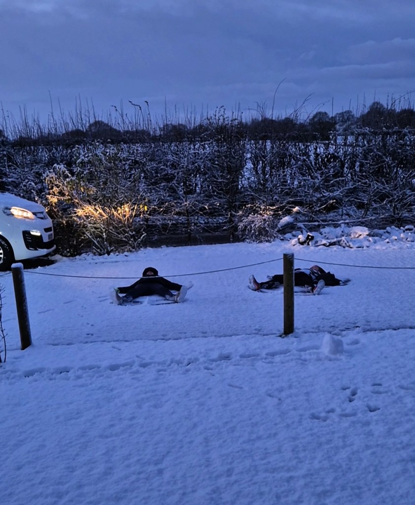 It wasn’t thick enough to get the sledge out, but boy did they make sure that they made the most of the snow. And I’m glad they did, because it never lasts in England!