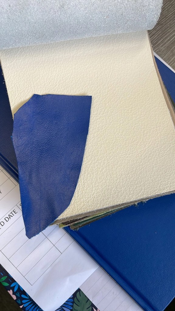 Vulcan were super helpful with providing photos and swatches via WhatsApp, though they did try to encourage me to come in and see their swatches in person. Unfortunately I was (a) unable to make a 2+ hour round trip journey during their working hours due to my own job, and (b) I’m not a super fussy person, so as long as its ivory-ish and Ford-blue-ish, I’ll be happy 🙂 A plan was put together, a lead time of approximately 4-6 weeks was quoted, and I left them to it.
