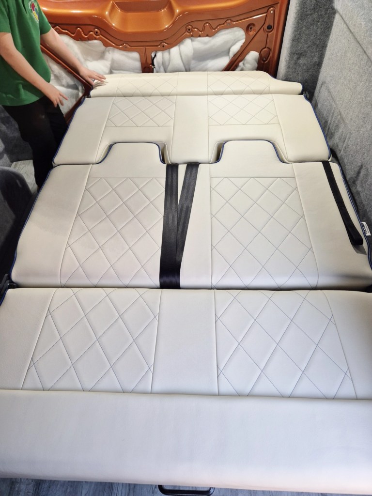 That looks absolutely stunning and superb choice of colour. We have a RIBA bed which is great in that you sleep on the reverse side but not so great in that we only have two positions (sit up or lie flat). I would like to be able to recline the rear bed/seat so that we can sit up in bed – something I need to ask our converter about next time I take it for a service
